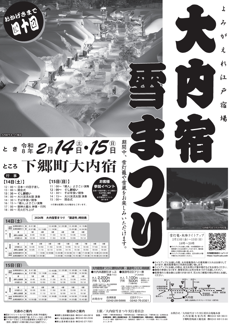 | お問合せ | 大内宿雪まつり実行委員会 TEL.0241-68-3611 |